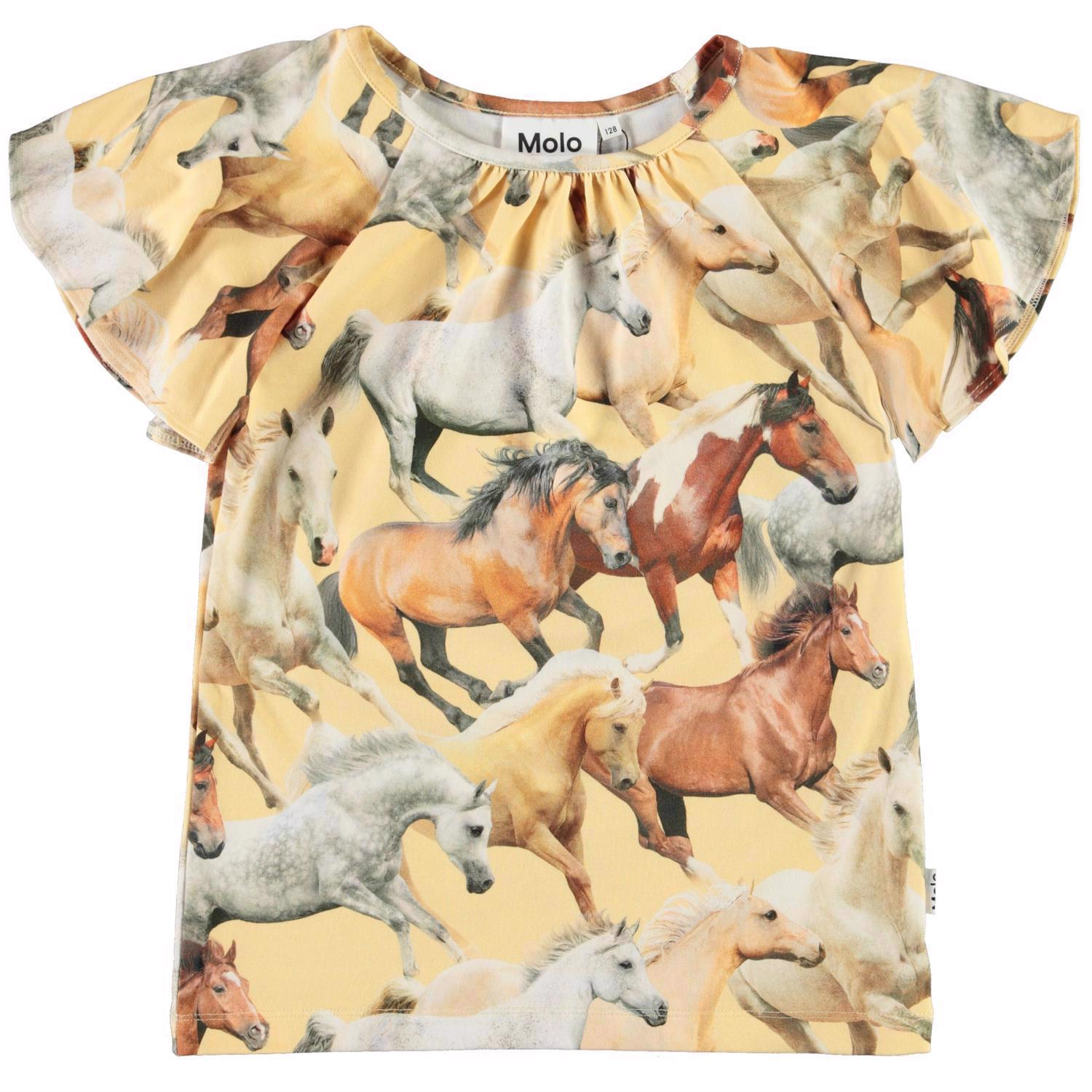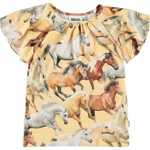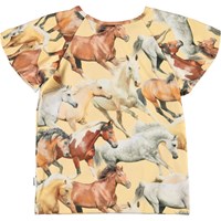 Rachel ist ein wunderschönes T-Shirt mit weiten femininen Ärmeln und Rundhalsausschnitt. Das T-Shirt ist hier in Gelb mit Pferdeaufdruck.