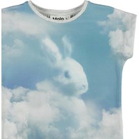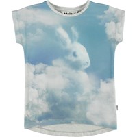 Ragnhilde ist ein T-Shirt mit einem Wolkendruck, der wie ein Kaninchen aussieht. Das T-Shirt hat einen grauen Rücken.