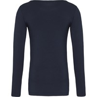 Ramona ist eine einfache Langarmbluse aus dunkelblauem Jersey.