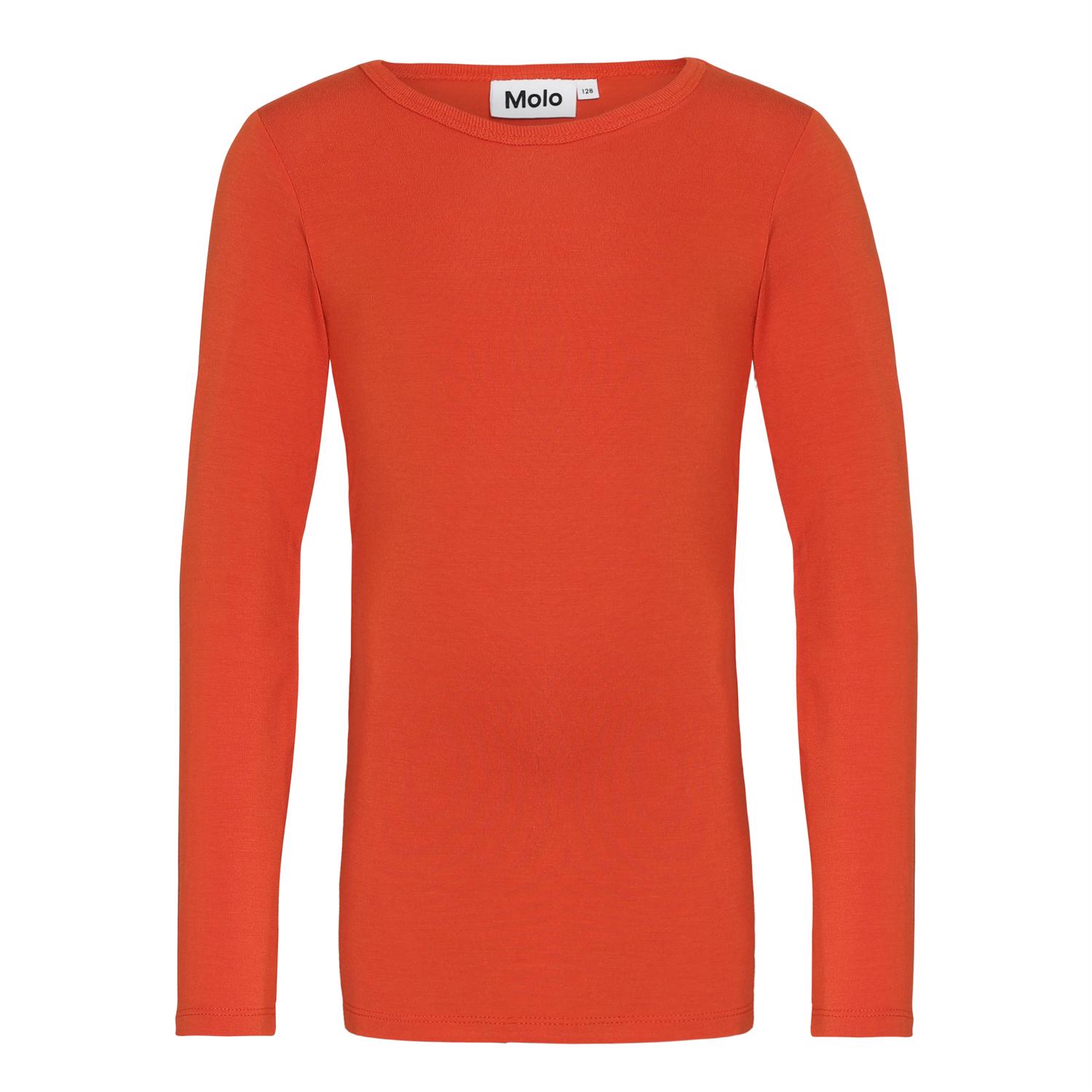 Ramona ist eine einfache Langarmbluse aus orangefarbenem Jersey.