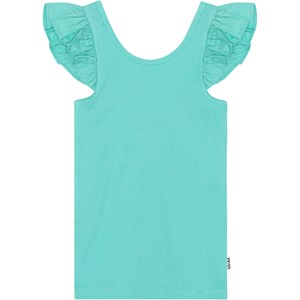 Türkisfarbenes Tanktop aus weicher Öko-Baumwolle. Das Oberteil hat eine körpernahe Passform und Popeline-Rüschen an den Schultern.