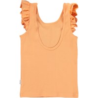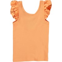 Ranja ist ein Tanktop in Orange, das jedes Outfit auf ein neues Level bringen kann. Mit seinen feinen Popeline-Rüschen an den Schultern ist Ranja sowohl Alltags- als auch Partykleidung.