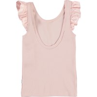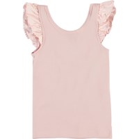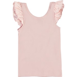Ranja ist ein Rosaes Tanktop mit kleinen Rüschenkanten an den Schultern.