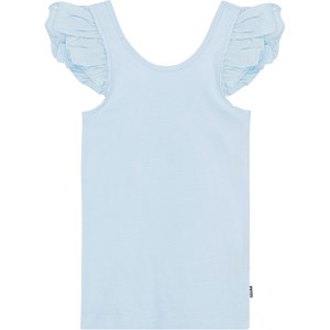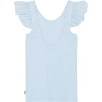 Pastellblaues Tanktop aus weicher Öko-Baumwolle. Das Oberteil hat eine körpernahe Passform und Popeline-Rüschen an den Schultern.