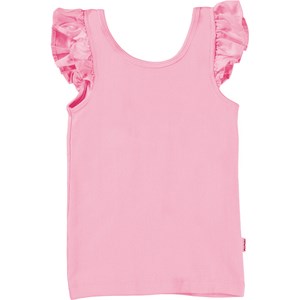Ranja ist ein rosa Tanktop, das jedes Outfit auf ein neues Level bringen kann. Mit seinen feinen Popeline-Rüschen an den Schultern ist Ranja sowohl Alltags- als auch Partykleidung.