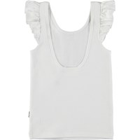 Ranja ist ein weißes Tanktop mit kleinen Rüschenkanten an den Schultern.