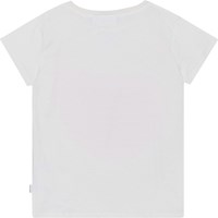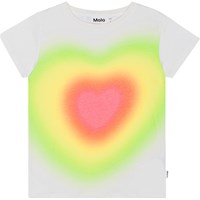 Weißes T-Shirt aus Öko-Baumwolle mit kurzen Ärmeln. Das T-Shirt hat eine gute Passform. Auf der Vorderseite befindet sich ein herzförmiger Graffiti-Druck in Molos ikonischen Regenbogenfarben.