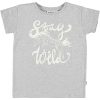 Ranva ist ein graues T-Shirt mit einem Pferdeaufdruck und dem Text 'Stay Wild' auf der Vorderseite. Dieser Artikel ist Öko-Tex zertifiziert.