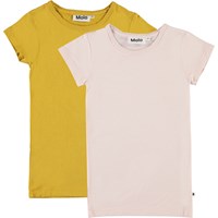Rasmine ist Molos klassisches Basic-T-Shirt und hier sind zwei schönen Farben in einer 2-Pack gesammelt, sodass man sich nicht entscheiden müssen. Eines ist goldgelb und das andere rosa.