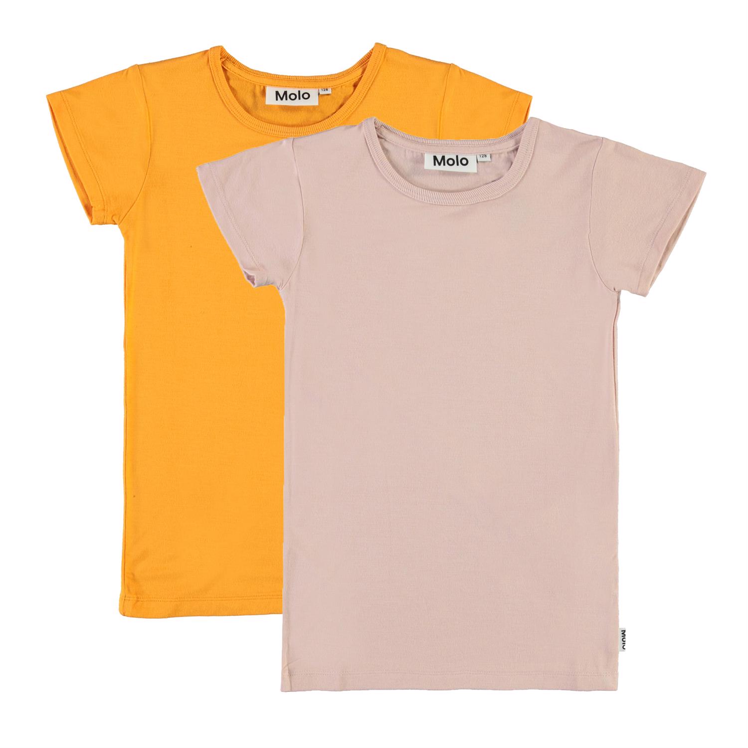 Rasmine ist ein klassisches T-Shirt mit kurzen Ärmeln und runden Halsausschnitt. In diesem Paket erhalten Sie sowohl eine oranges und ein rosa T-Shirt. Ecocert Greenlife, certifikationsnr. 197496.