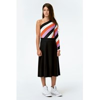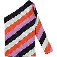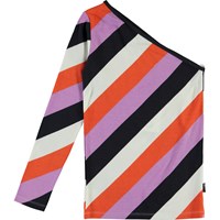 Ravonda ist eine asymmetrische Bluse mit nur einem langen Ärmel und diagonalen Streifen.
