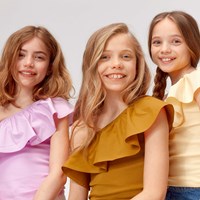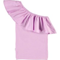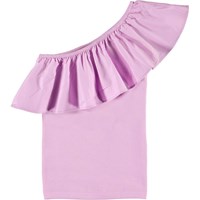 Rebecca ist ein hellviolettes asymmetrisches Top mit einer schrägen Rüschenkante.