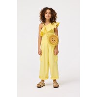 Gelbes One-Shoulder-Top aus Öko-Baumwolle mit Stretch. Das Top hat ein enganliegendes Design und eine breite Popeline-Rüsche entlang des Ausschnitts.