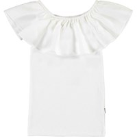 Reca ist ein weißes Top mit Rüschenkante oben.