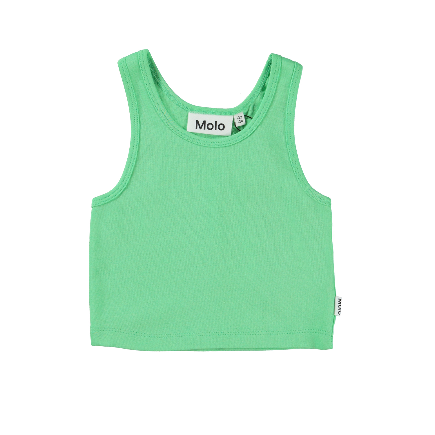 Rhea ist ein kurzes Tanktop in frischem Grün mit sportlichem Look.