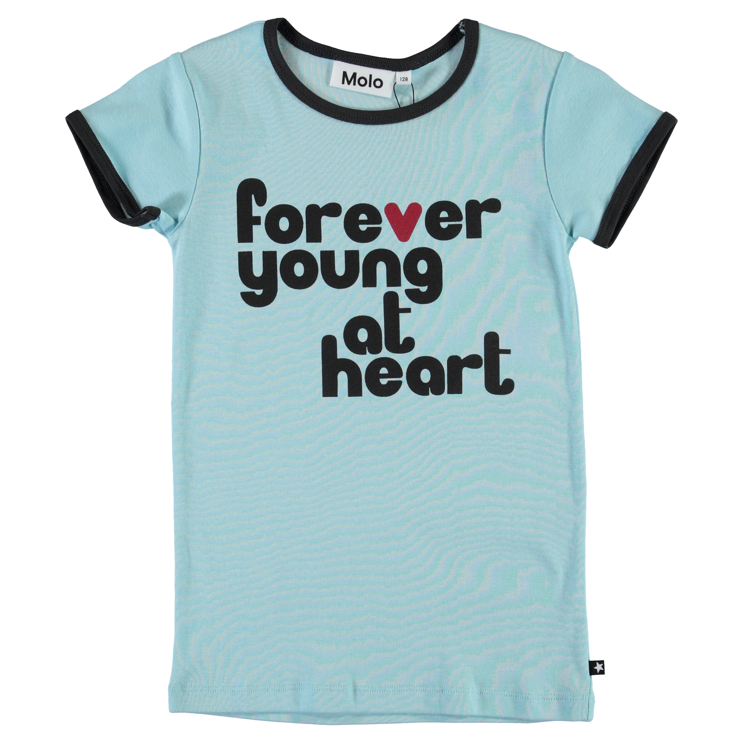 "Forever young at heart" ist die Aussage auf dem Rhiannon T-Shirt. Finde also die verspielte Seite vor und bleibe für immer jung in diesem coolen T-Shirt. Das T-Shirt ist rosa und hat grüne Ränder an den Ärmeln und der Halsöffnung.