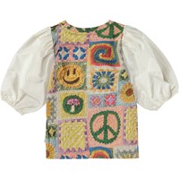 Mehrfarbige Bluse mit durchgehendem Häkeldruck und weißen Puffärmeln aus Baumwollpopeline. Bei diesem Druck war Molo fleißig am Häkeln und unsere eigene gedruckte Interpretation des tollen Trends zu kreieren. Du findest Regenbögen, fröhliche Gesichter, Pilze, Sonnenblumen und Zeichen des Friedens. Eine Aufforderung, selbst die Häkelnadel zu finden um eigene Farben und Muster zu erforschen und der Fantasie freien Lauf zu lassen. Diese Bluse ist aus 100% Baumwolle, hat einen Rundhalsausschnitt mit gerippten Bündchen, kurze Ärmel mit Puffärmeln und eine normale Passform.