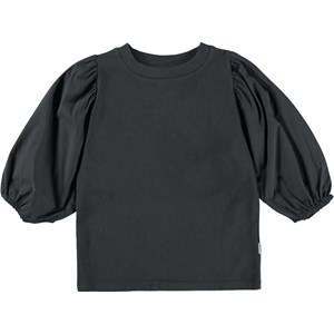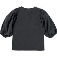 Rica ist eine graue Bluse mit großen Puffärmeln, die in der Mitte der Arme enden.