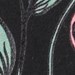 Schwarzes T-Shirt mit kurzen Ärmeln aus weicher Öko-Baumwolle und geripptem Ausschnitt. Das T-Shirt hat eine lockere Passform und einen großen, farbenfrohen Rückendruck von Blumen sowie den Text "Alle Emotionen".