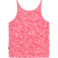 Rosa Oberteil mit einem Muster aus Zitrusfrüchten aus weichem Baumwollfrottee. Das Oberteil ist locker, mit schmalen Trägern.