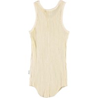 Roberta ist eine zartgelber gerippter Tanktop, der an den Seiten etwas kürzer in der Länge ist. Ecocert Greenlife, certifikationsnr. 197496.