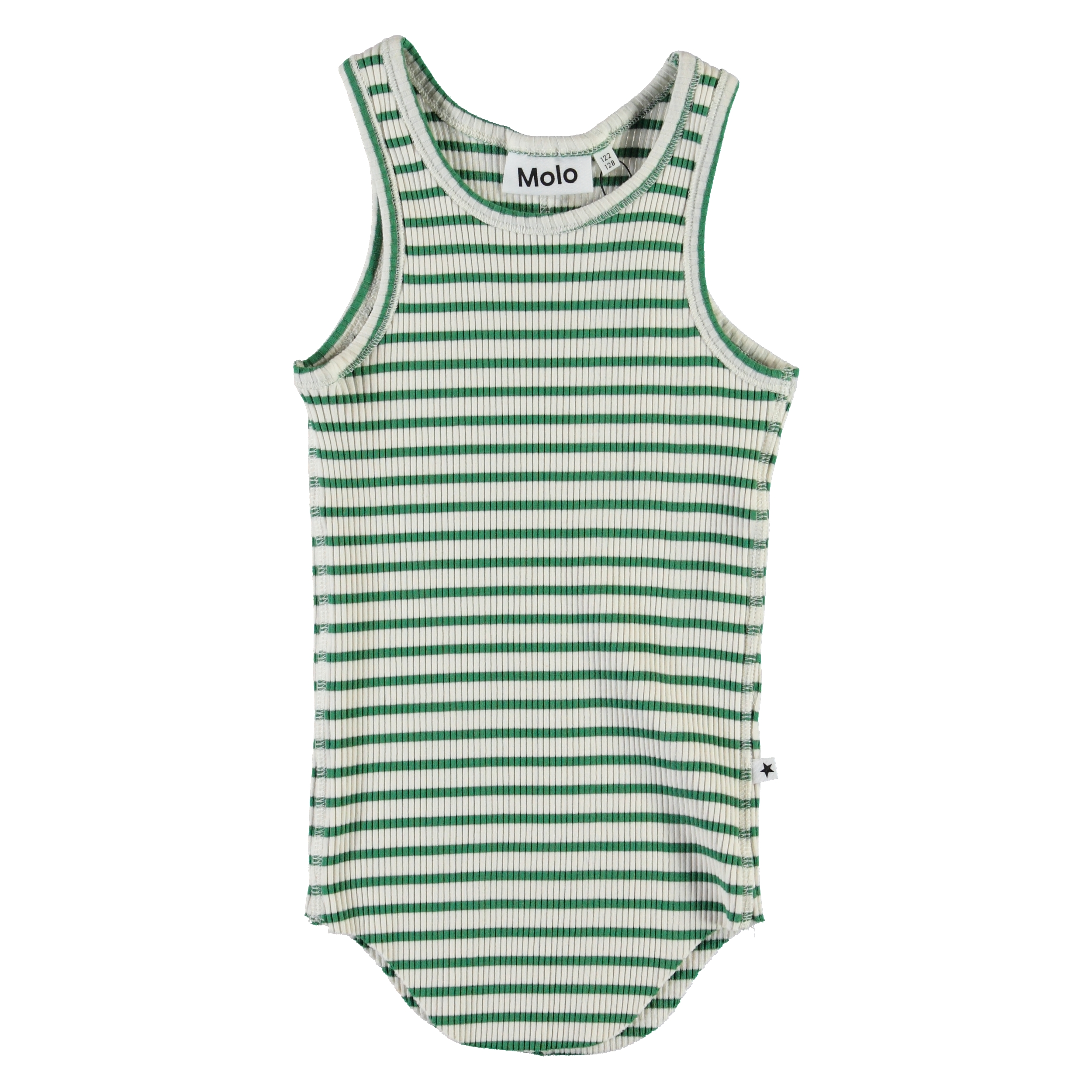 Roberta ist ein grün-weiß gestreiftes Trägertop. Das Top ist perfekt für die meisten Sommeroutfits.