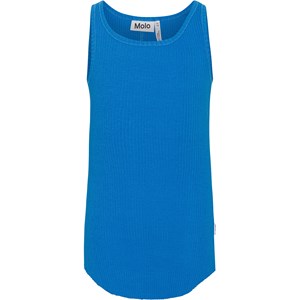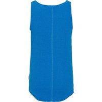 Blaues Tanktop aus weicher Öko-Baumwolle in Stretch-Rippstrick. Das Oberteil hat eine enge Passform und unten einen runden Saum.