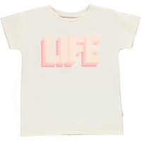 Robine ist ein weißes T-Shirt mit dem Aufdruck des Textes „Life“ in Rosa.
