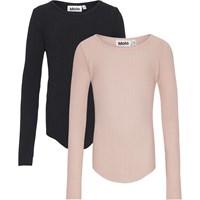 2er-Pack langärmelige Oberteile aus dehnbarem Öko-Baumwollripp. Die Oberteile haben eine eng anliegende Passform, einen Rundhalsausschnitt, rohe Kanten an beiden Ärmeln mit einer praktischen Daumenöffnung. Zusätzlich gibt es eine vertikale Naht in der Mitte des Rückens und einen rohen, abgerundeten Saum unten. Das Set enthält ein schwarzes und ein puderfarbenes Oberteil.