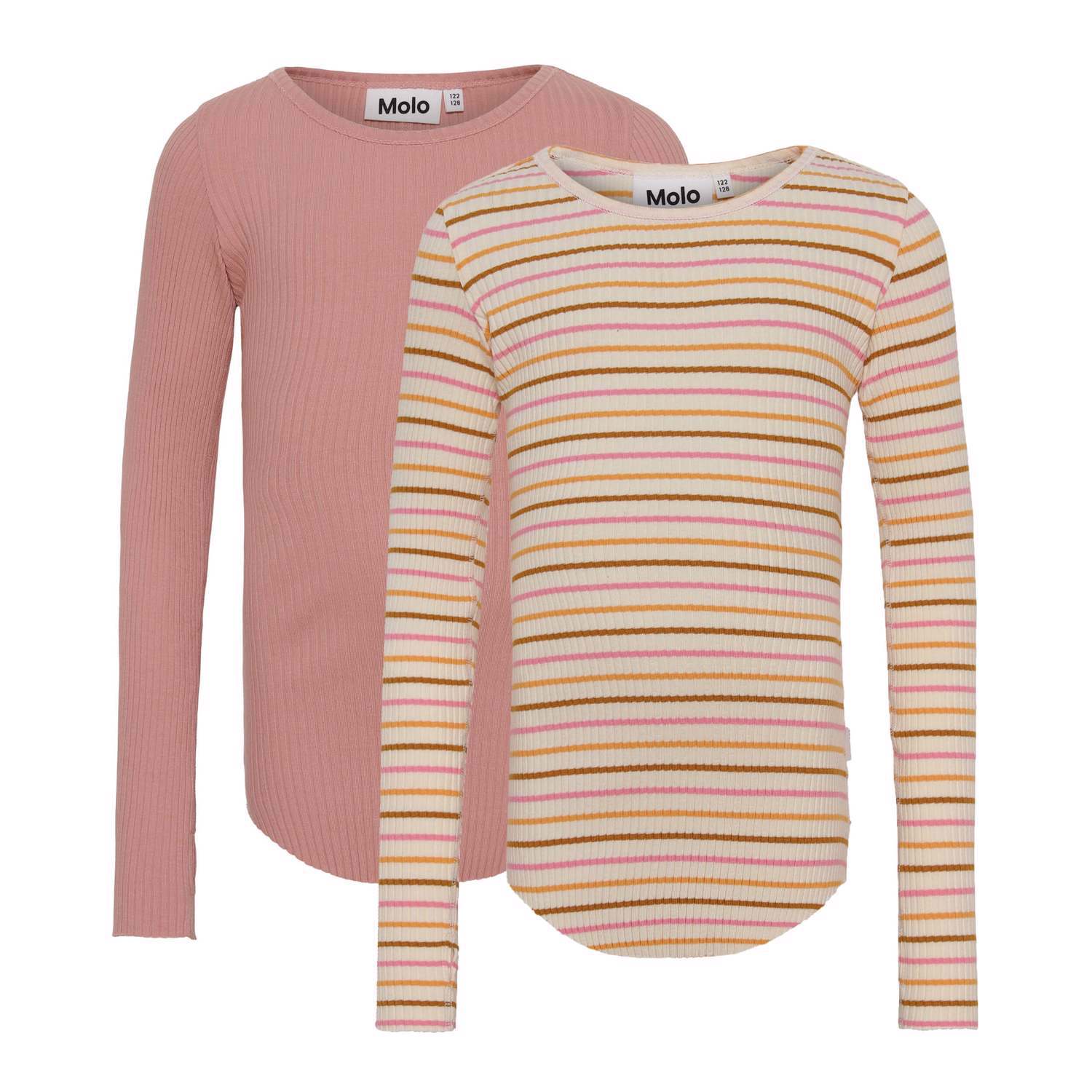 Rochelle ist der perfekte Pullover, von dem Sie nie genug bekommen werden. Der Pullover ist in Ripp-Qualität und hat ein Loch für den Daumen. Hier ist Rochelle im 2er Pack, das sowohl eine rosa als auch eine gestreifte Bluse enthält.