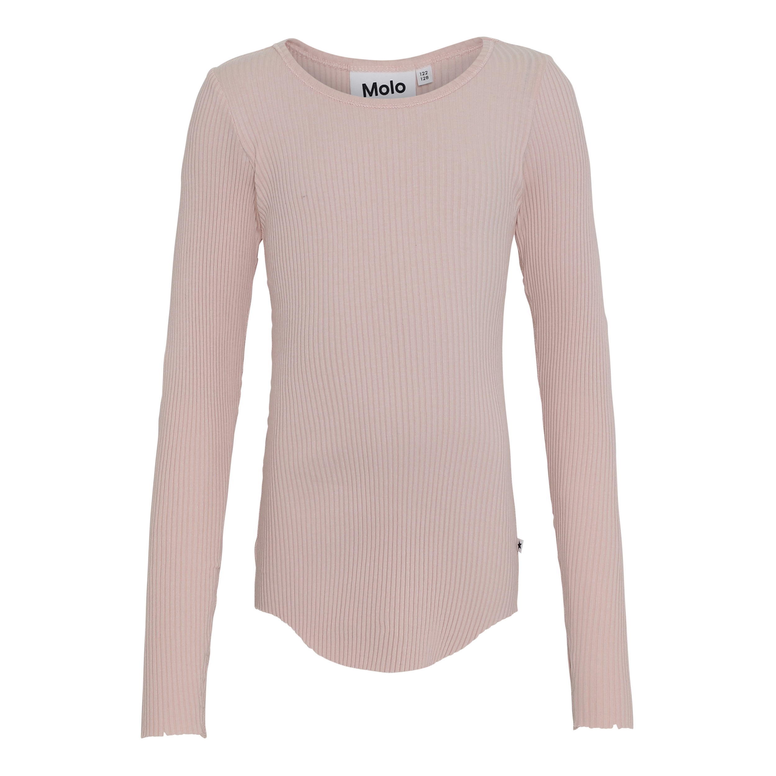Rochelle ist die perfekte Basic-Bluse, von der man nie genug bekommt. Rochelle ist hier in einem hellen Rosa. Die Bluse hat Löcher für die Daumen.