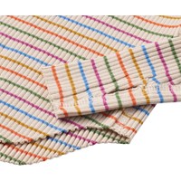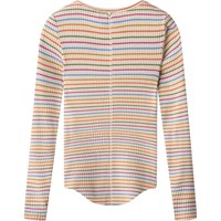 Gestreiftes Langarmshirt aus dehnbarem Öko-Baumwollripp. Das Oberteil hat eine enge Passform, einen runden Halsausschnitt, rohe Kanten am Saum und an den Ärmeln sowie Daumenlöcher.