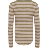Rochelle ist der perfekte Pullover, von dem Sie nie genug bekommen werden. Hier ist der Pullover in Rosa und Grün gestreift. Die Bluse ist in Ripp-Qualität und hat ein Loch für den Daumen.