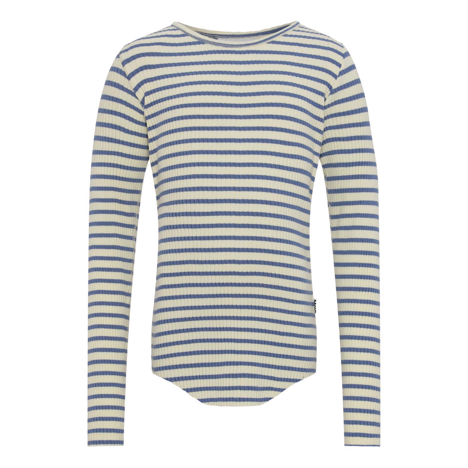 Rochelle ist der perfekte Pullover, von dem man im Kleiderschrank nie genug bekommt. Rochelle ist hellgelb mit blauen Streifen. Der Pullover ist in Rippqualität und hat ein Loch für die Daumen.
