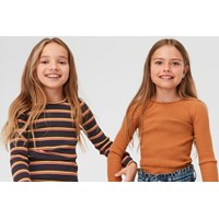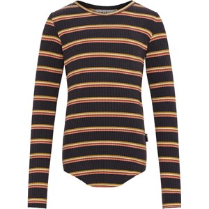Rochelle ist der perfekte Pullover, von dem man im Kleiderschrank nie genug bekommt. Rochelle ist hier in Braun mit schmalen Streifen in Pink, Gelb und Braun. Der Pullover ist in Rippqualität und hat ein Loch für die Daumen.
