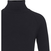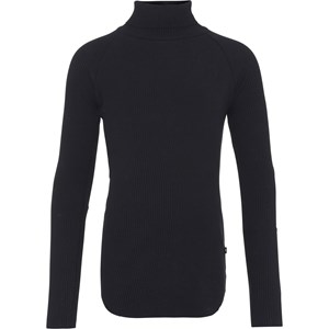 Romaine ist die perfekte schwarze High-Neck-Bluse, von der man nie genug bekommt. Die Bluse hat Rippqualität und hat Löcher für die Daumen.