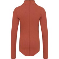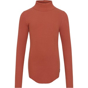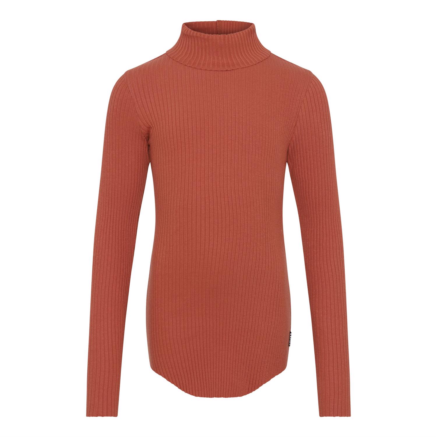 Romaine ist der braune Pullover mit hohem Hals, von dem man nie genug bekommt. Der Pullover ist in Rippqualität.