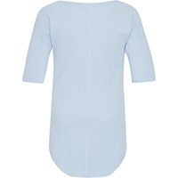 Ronelle ist eine Kurzarmversion unseres Bestsellers Rochelle. Ronelle ist ein geripptes hellblaues T-Shirt aus Öko-Baumwolle mit einer schmalen Passform, die es perfekt macht, um es allein oder unter anderen Styles zu tragen.