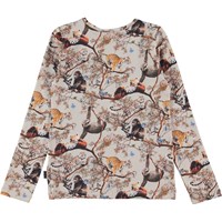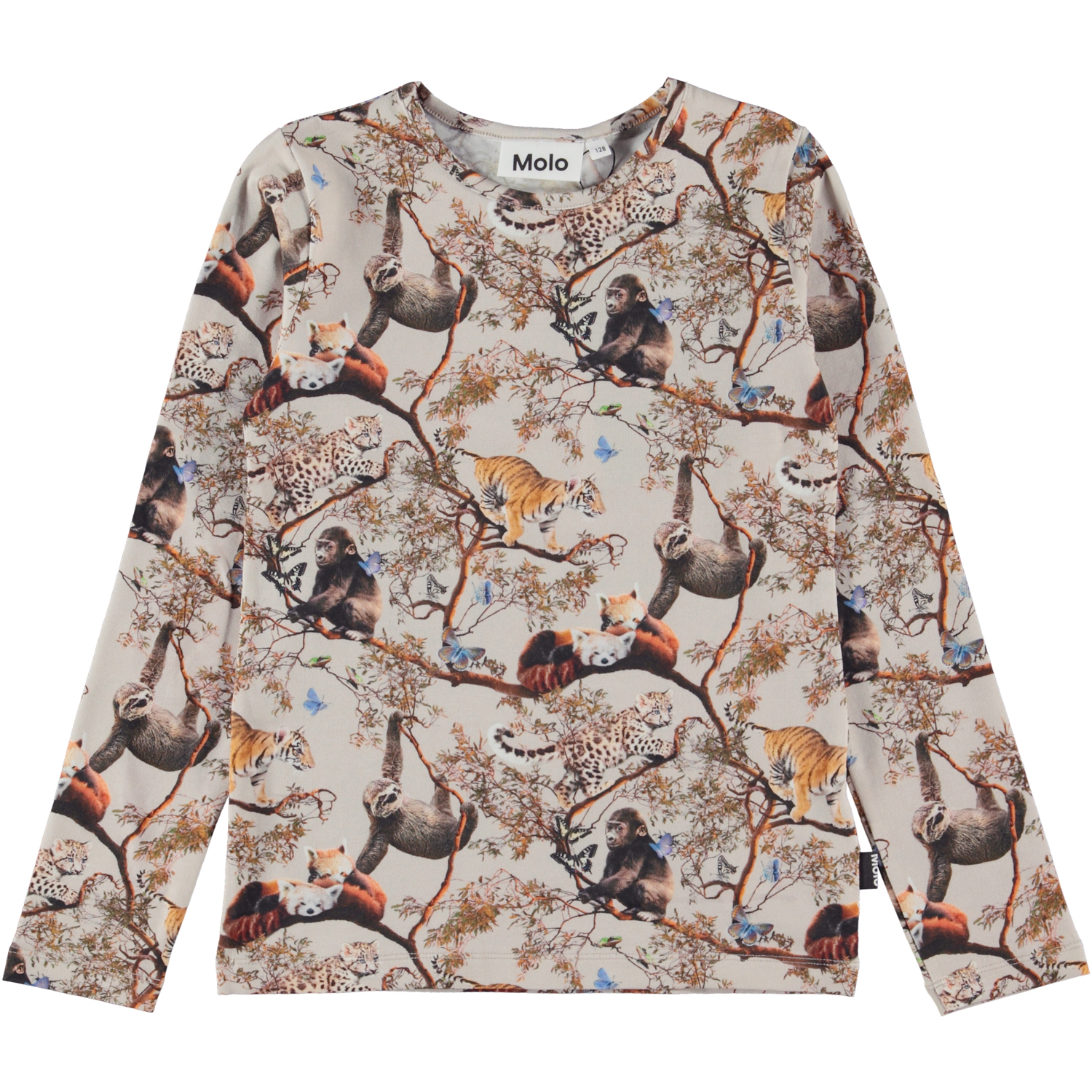 Rose ist eine langärmlige Bluse aus Öko-Baumwolle. Rose ist im Allover-Print mit Cubs Harmony, mit verschiedenen Tierbabys, die in Frieden und Harmonie zusammenleben.