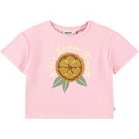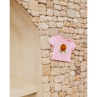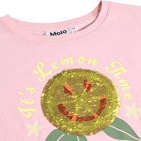 Übergroßes pinkes T-Shirt aus Bio-Baumwolle mit geripptem Halsausschnitt. Das T-Shirt hat eine wendbare Pailletten-Zitrone auf der Vorderseite.