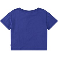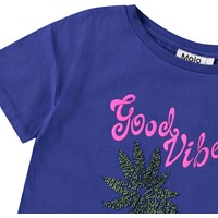 Oversized dunkelblaues T-Shirt aus Öko-Baumwolle mit geripptem Ausschnitt. Das T-Shirt hat eine Perlstickerei einer grünen Ananas und den Text "Good Vibes".