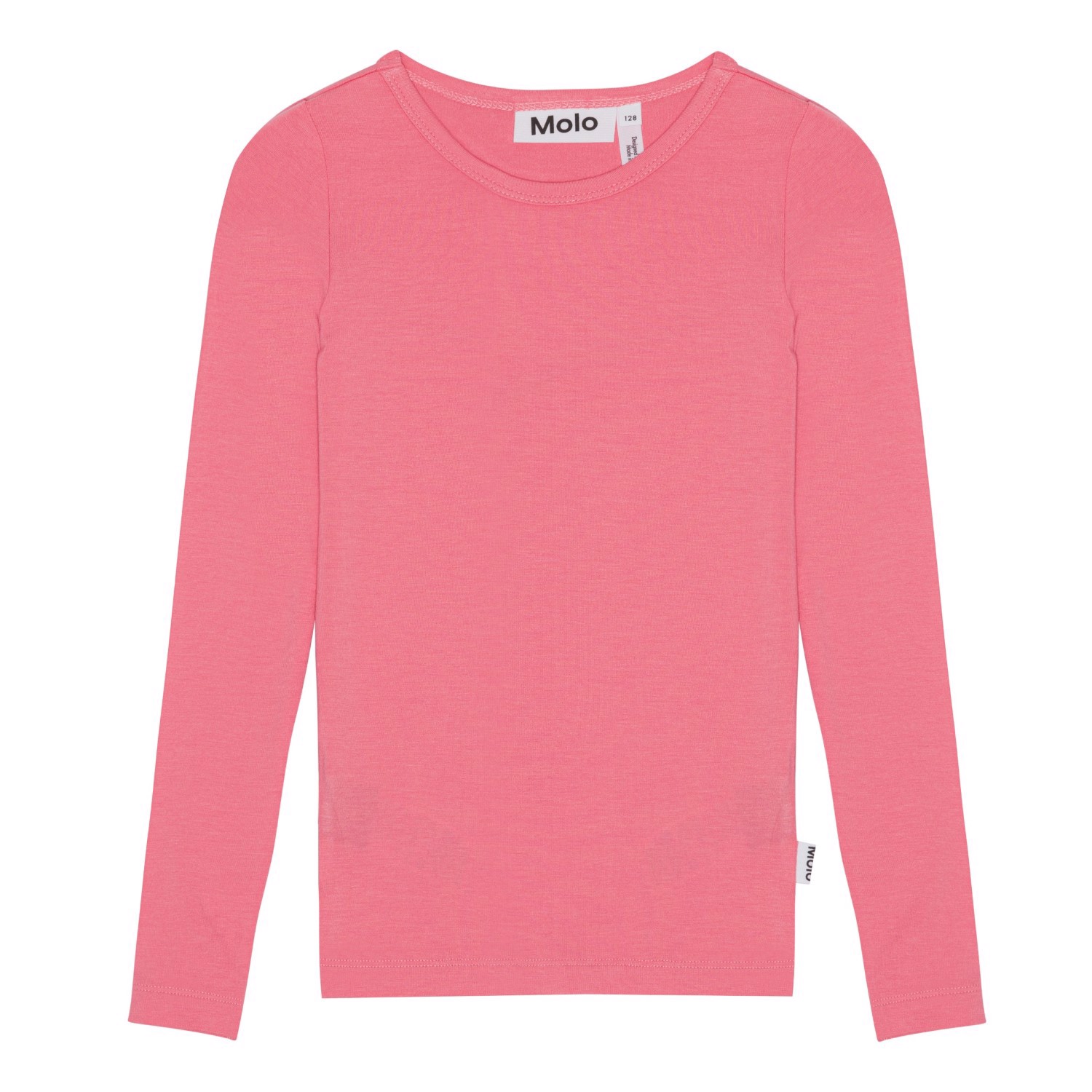 Rosafarbenes langarmshirt aus leichter und dehnbarer Viskosequalität. Das Shirt hat eine enge Passform und einen Rundhalsausschnitt.