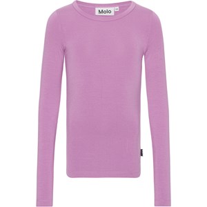 Lila Langarmshirt. Dieses Shirt ist aus 100% Viskose-Jersey, wodurch es weich und angenehm zu tragen ist. Es hat einen Rundhalsausschnitt und eine schmale Passform. Das perfekte Shirt, das wahlweise mit Strick, Sweat oder Jacke oder einfach solo gestylt werden kann.
