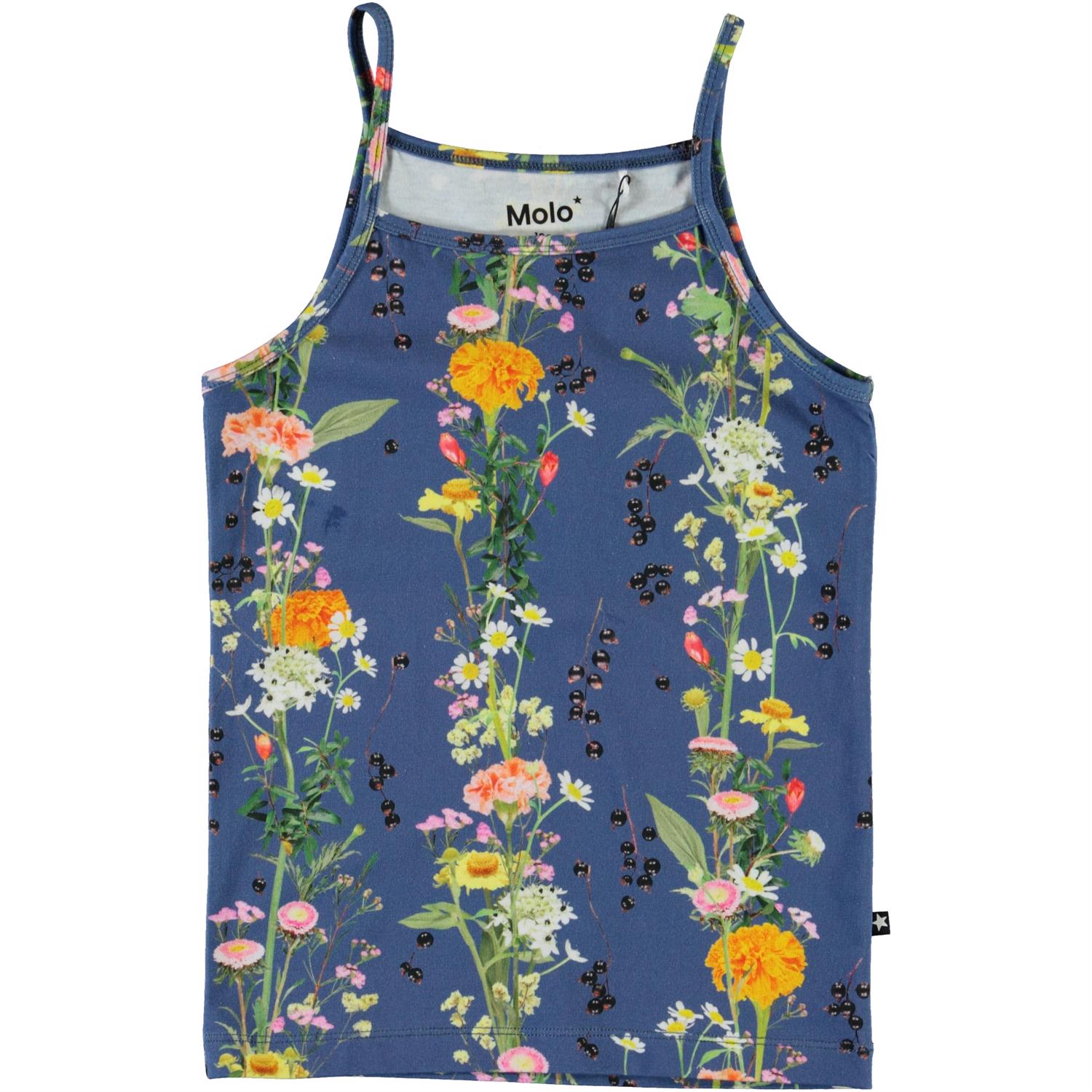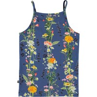 Janice ist ein Top in blau mit Druck von Blumenreben. Ecocert Greenlife, certifikationsnr. 197496