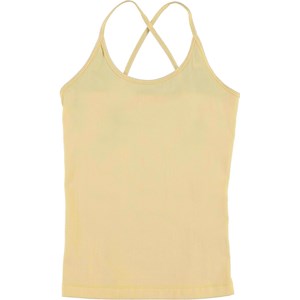 Janis ist ein gelbes Baumwollunterhemd mit gekreuzten Trägern auf der Rückseite. Die Unterwäsche wird in einem kleinen Stoffbeutel geliefert.