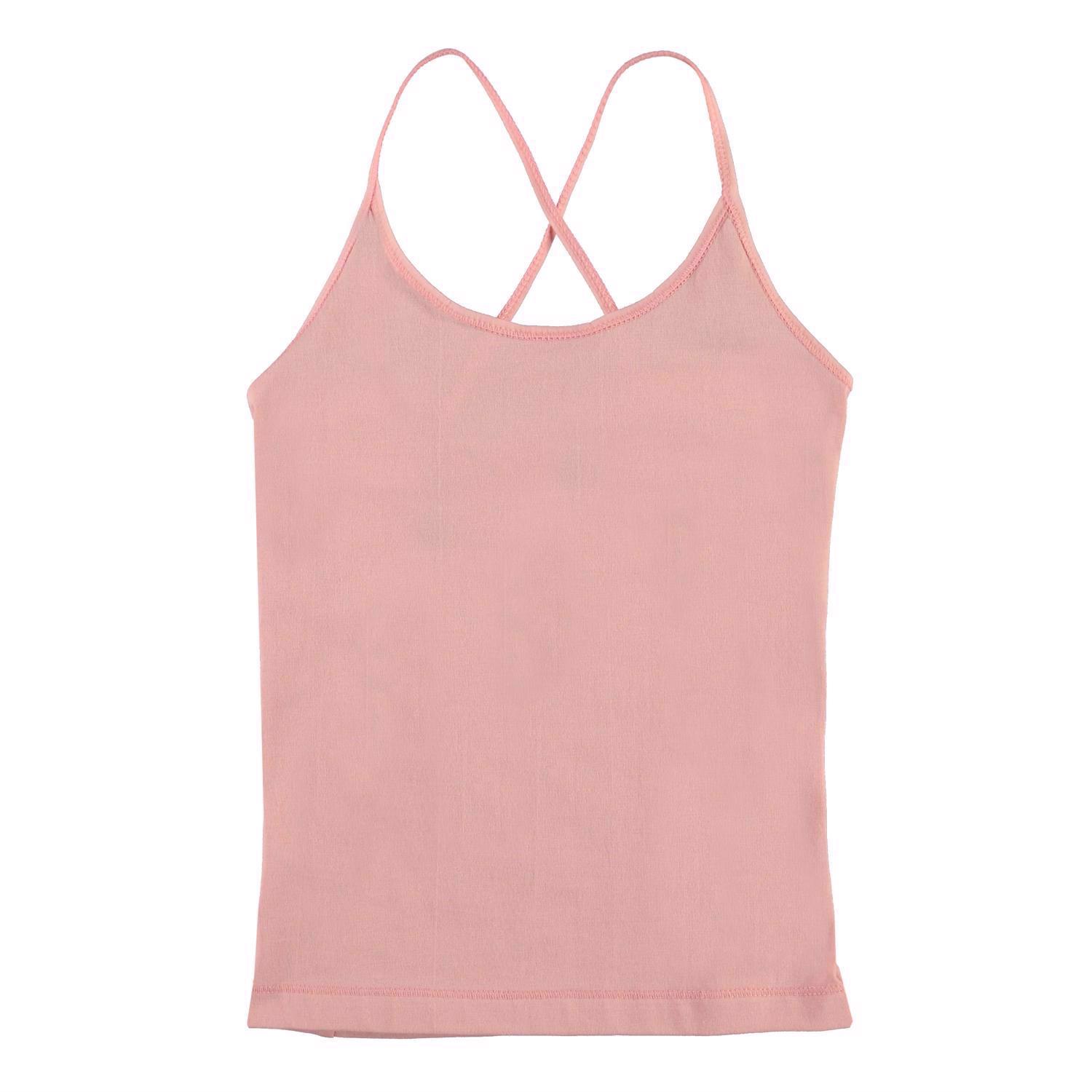 Janis ist ein rosa Baumwollunterhemd mit gekreuzten Trägern auf der Rückseite. Die Unterwäsche wird in einem kleinen Stoffbeutel geliefert.