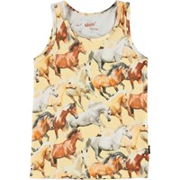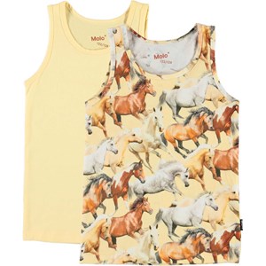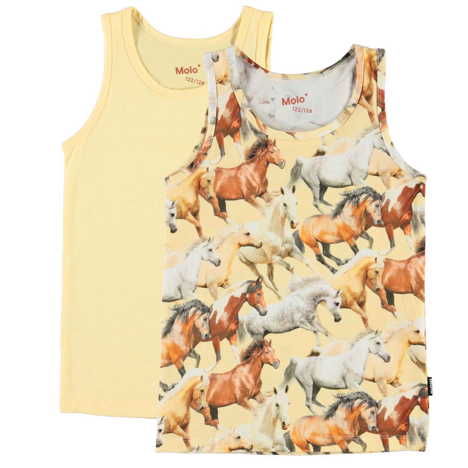 2er-Pack Unterhemden mit breiten Trägern. Einer in Gelb, der andere mit Pferdemotiven.