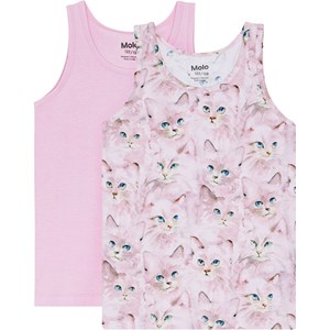 2er-Pack Tanktops aus Öko-Baumwolle. Eins ist rosa und das andere hat ein Allover-Muster von Katzen in verschiedenen Rosa-Tönen. Sie können sie mit passenden Slips kombinieren und ein komplettes Set erhalten.