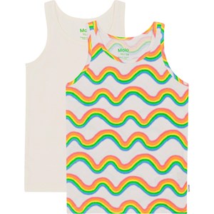 2er-Pack Unterhemden aus weicher Öko-Baumwolle. Die Unterhemden haben breite Träger und sind aus weicher, dehnbarer Baumwolle angenehm zu tragen. Die Unterhemden sind unterschiedlich, die eine hat ein durchgehendes Muster mit Regenbogen und das andere in einem frischen Korallenrot. Kombinieren Sie es mit passenden Höschen für ein komplettes Set.