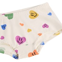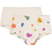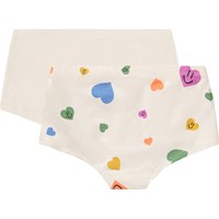 2er-Pack Hipster aus weicher, biologischer Baumwolle. Die Hipster haben ein breites Band mit einem festen und bequemen Gummizug an der Taille. Das Pack enthält ein Paar in Beige und ein Paar mit Herzmuster.